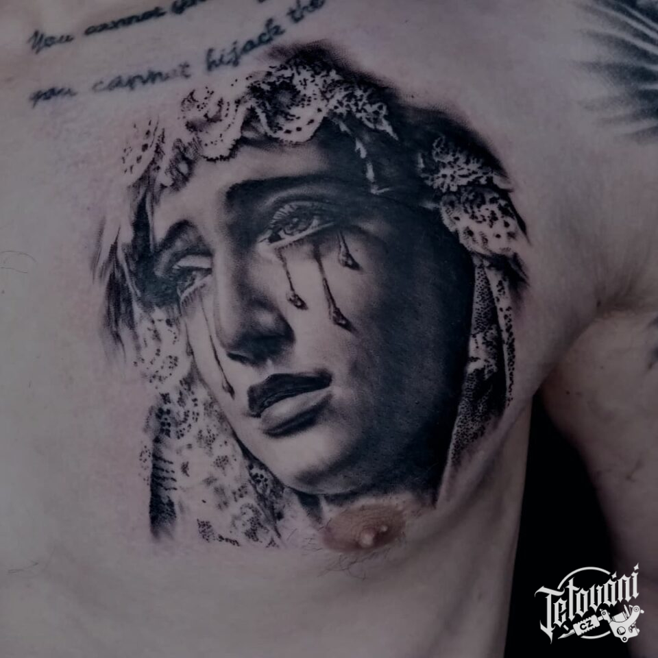Tetování náboženství, portrét Panny Marie na hrudi