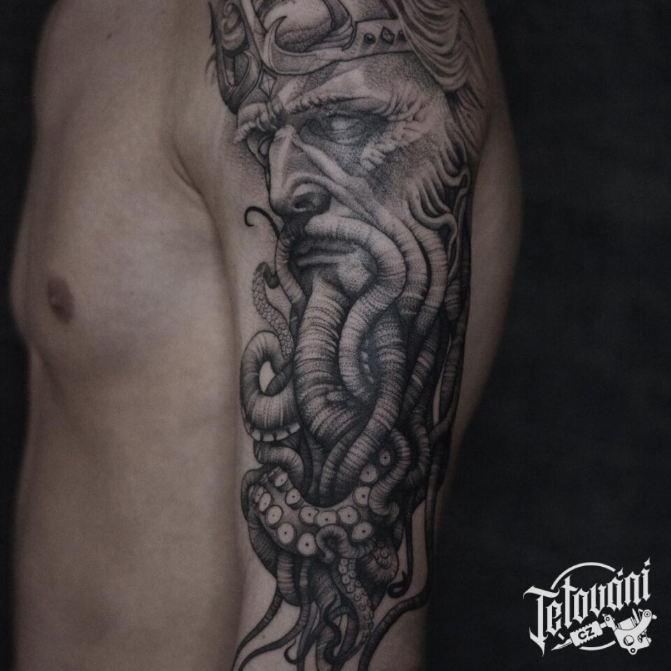Tetování náboženství portrét Poseidon na rameni