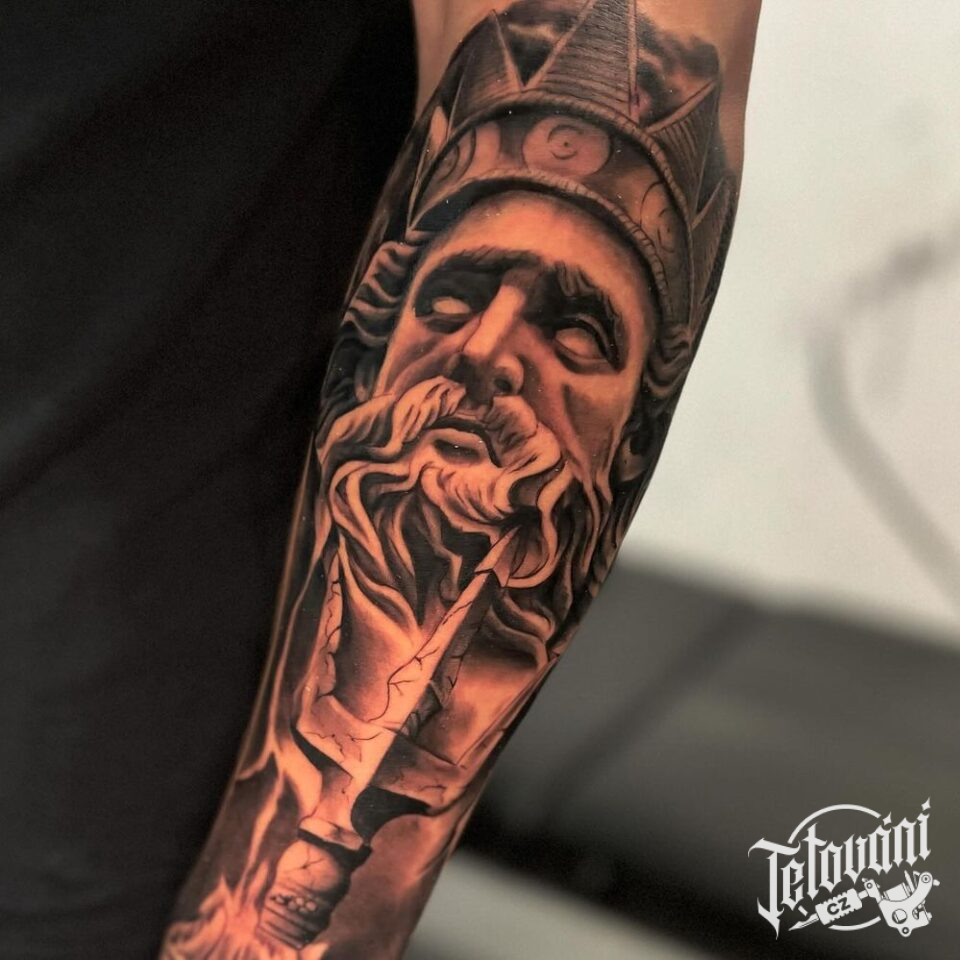Tetování náboženství portrét Poseidona na předloktí
