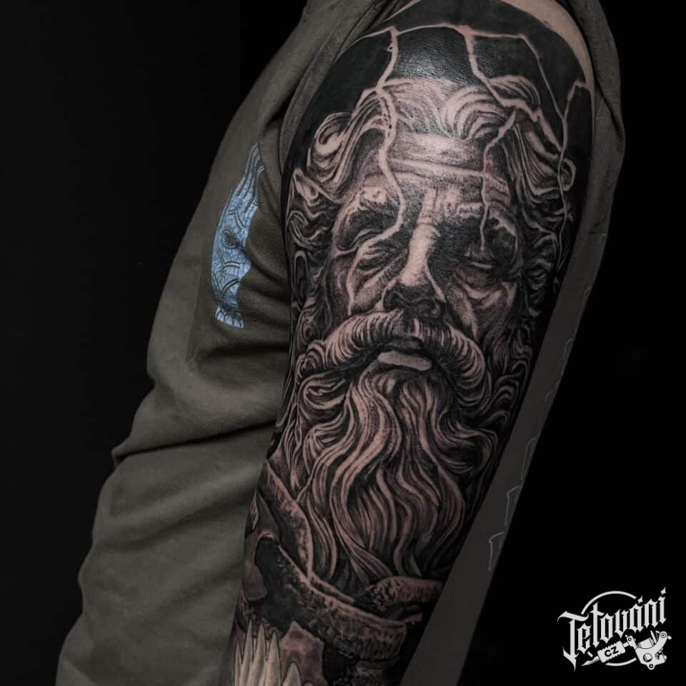 Tetování náboženství, portrét Zeus na rameno