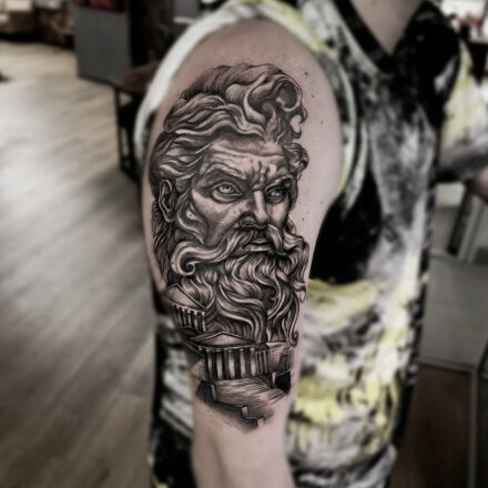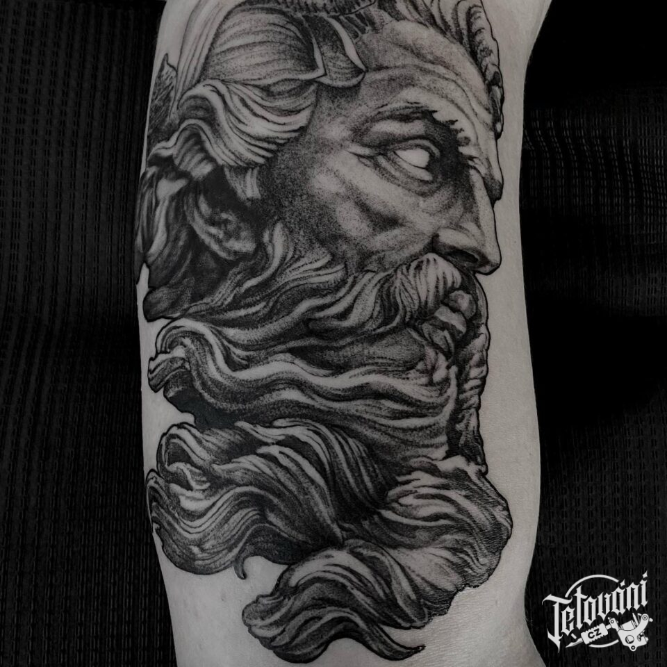 Tetování náboženství, portrét Zeuse na paži