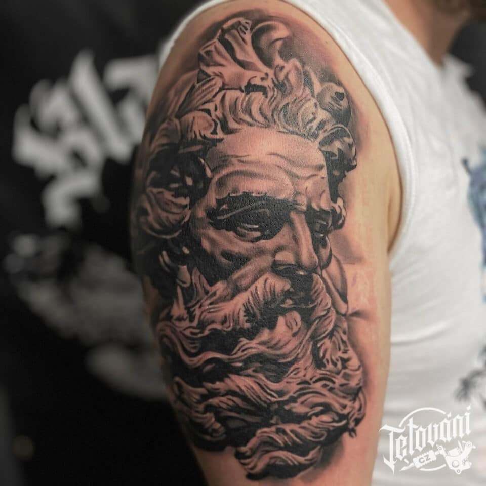 Tetování náboženství, portrét Zeuse na rameni