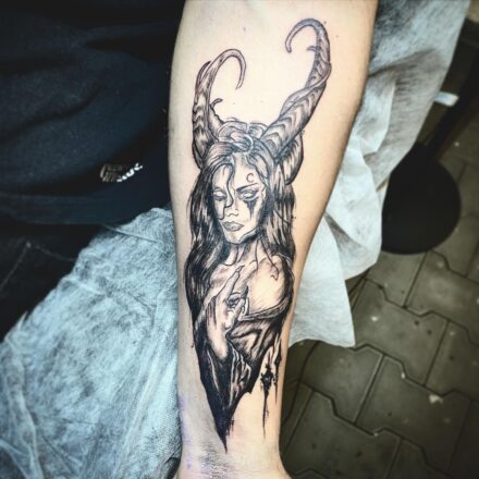 Tetování náboženství, portréty, Ježíš, ďábel na předloktí
