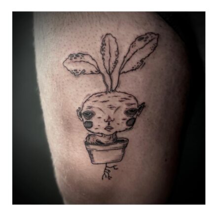 Tetování náboženství, řecký bůh Dionýsos a symbol zdraví, víno na bicepsu
