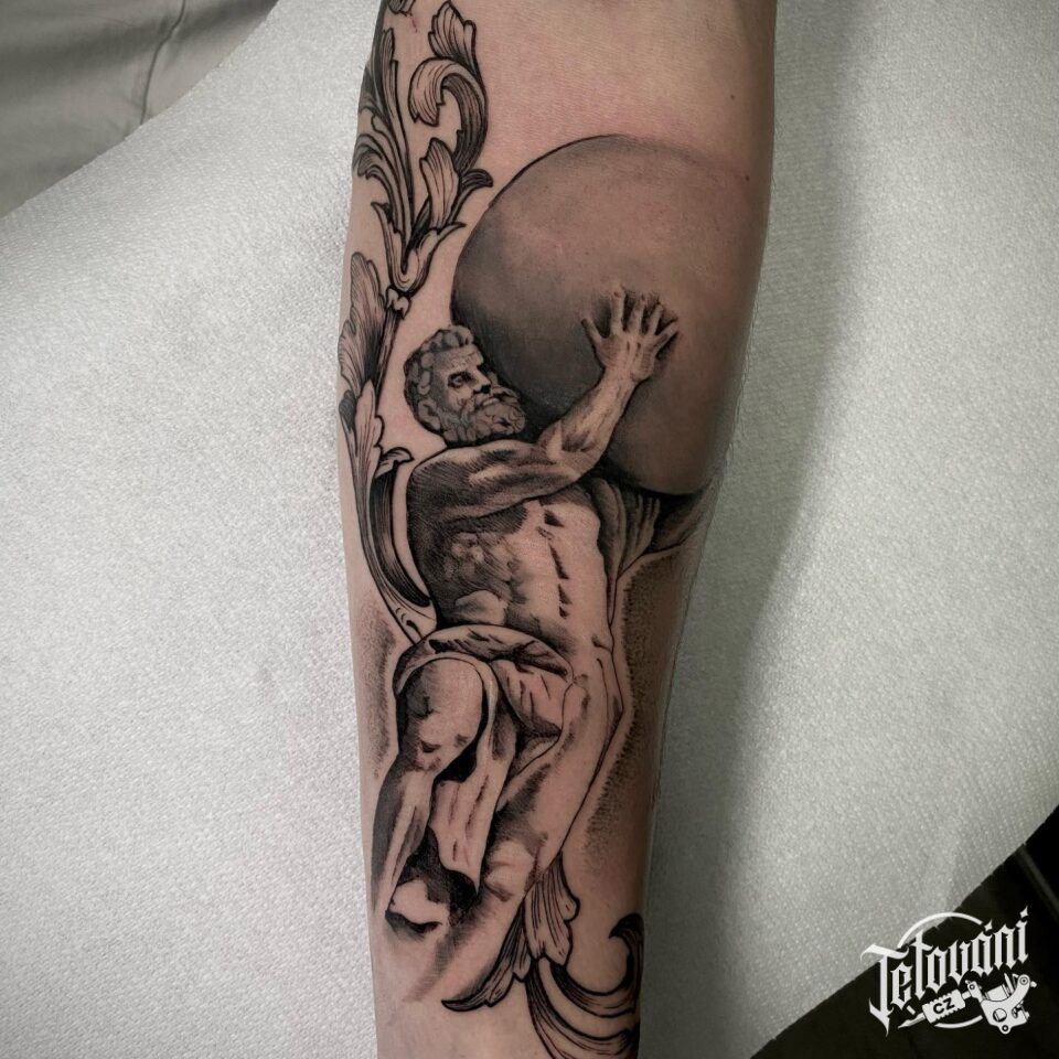 Tetování náboženství římský bůh, symboly na předloktí