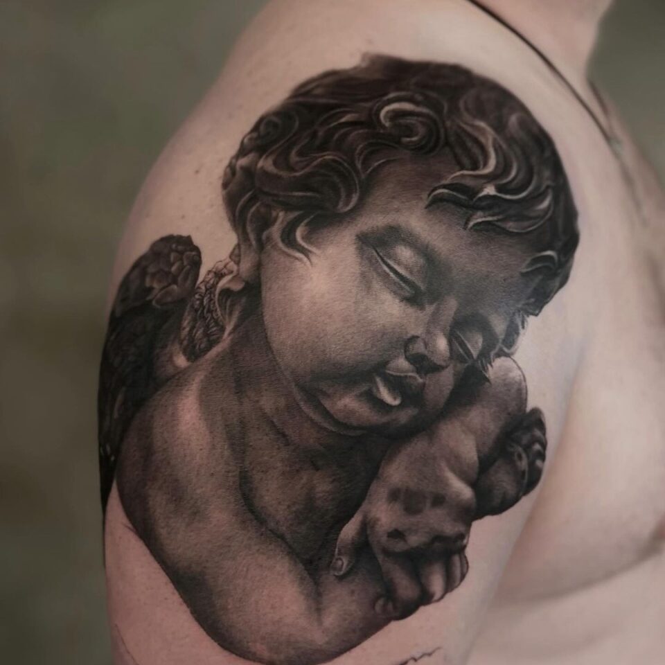 Tetování náboženství, tetování portrét anděla na rameni