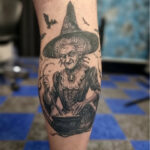 Tetování nadpřirozená bytost čarodějnice na lýtko