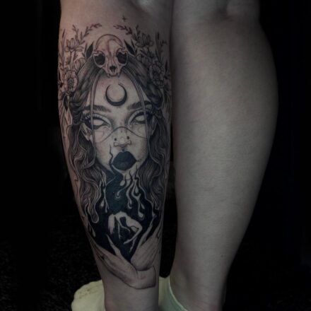 Tetování nadpřirozená bytost čarodějnice na předloktí