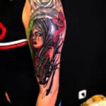 Tetování nadpřirozená bytost čarodějnice s lebkou na rameno