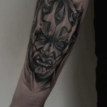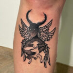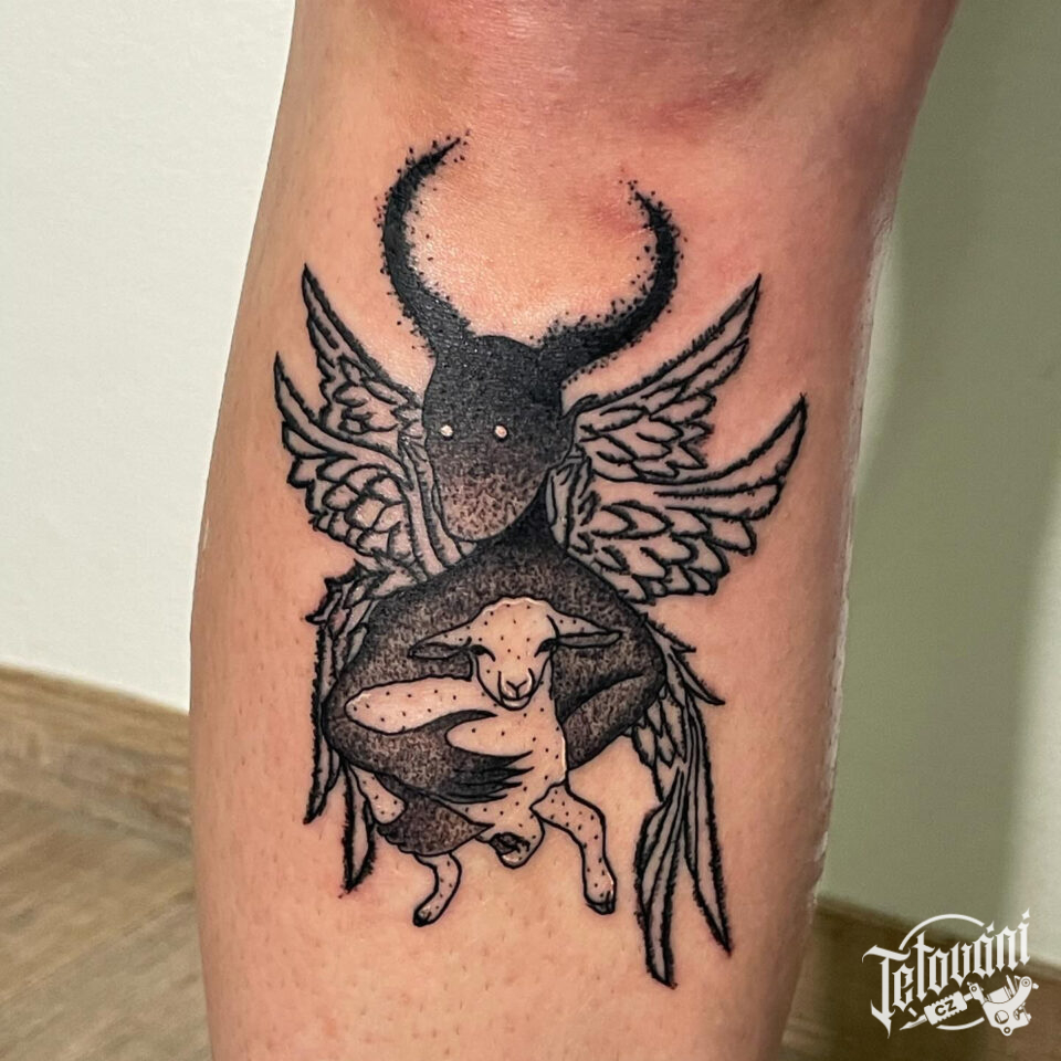 Tetování nadpřirozená bytost ďábel na holeň