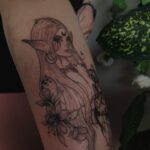 Tetování nadpřirozená bytost elf, květiny na předloktí