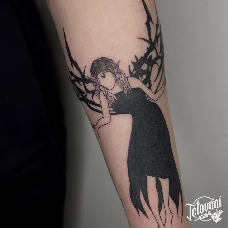 Tetování nadpřirozená bytost, elfka na předloktí