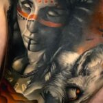 Tetování nadpřirozená bytost indiánky, liška pták na záda