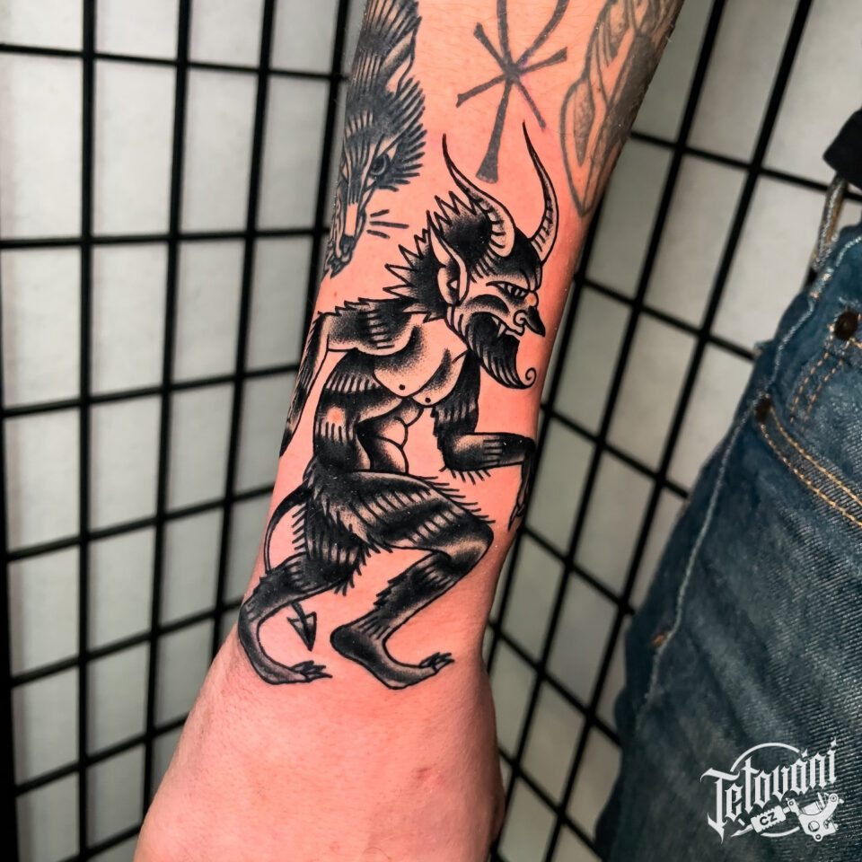 Tetování nadpřirozena bytost, krampus na předloktí