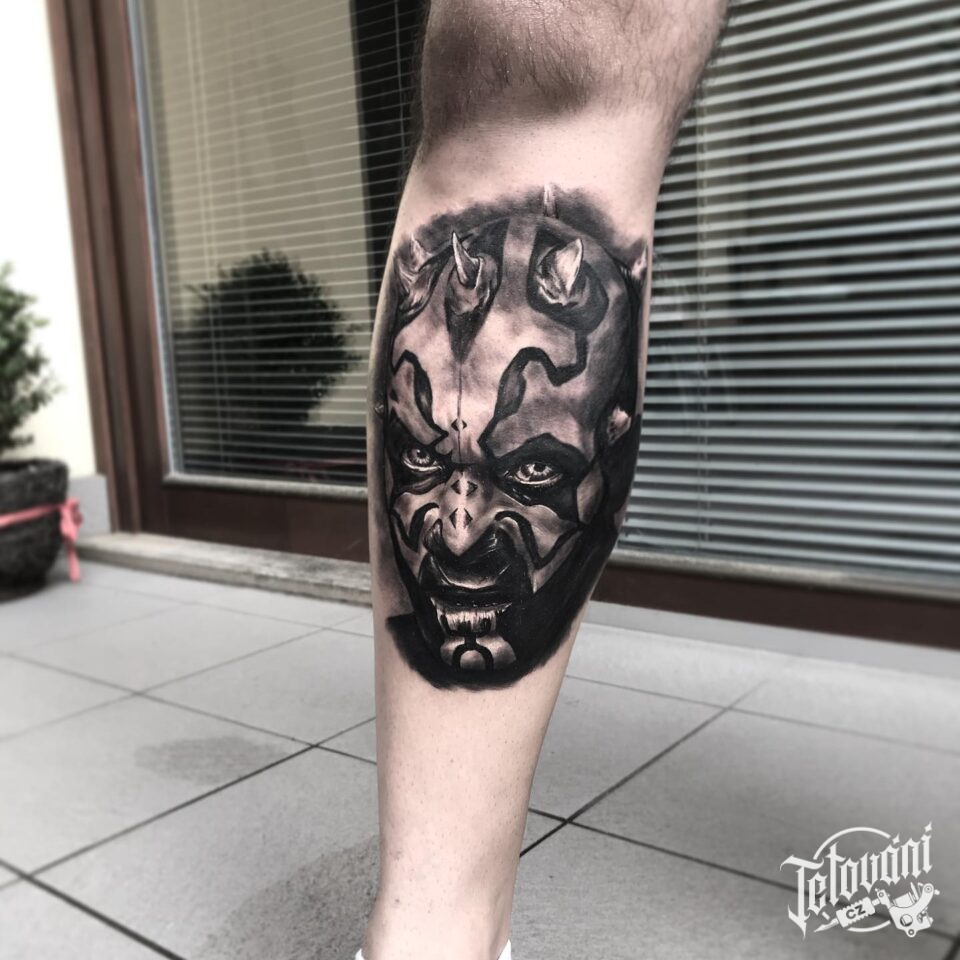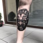 Tetování nadpřirozená bytost, Krampus, portrét na lýtko