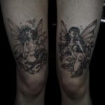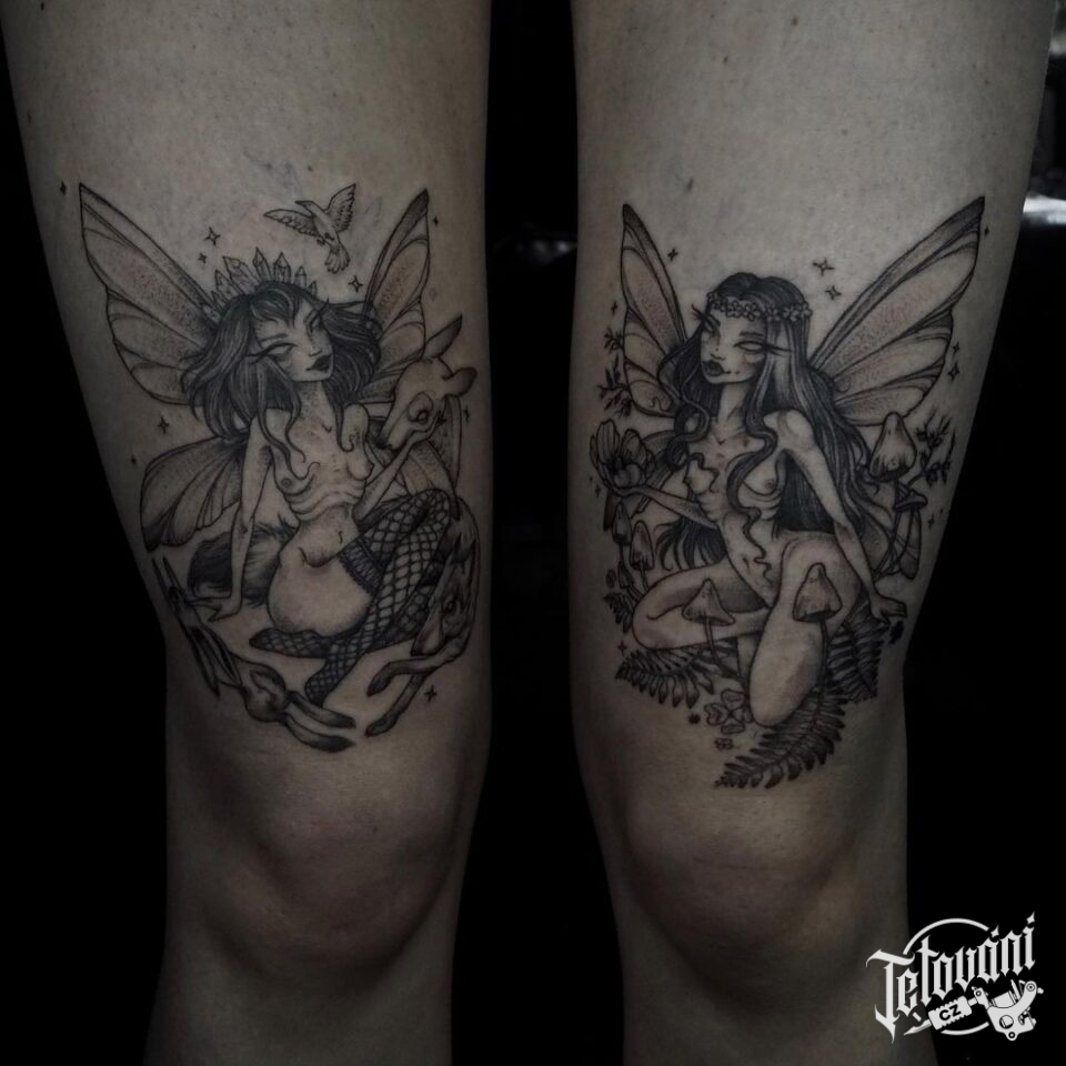 Tetování nadpřirozená bytost, květiny, žena na stehna