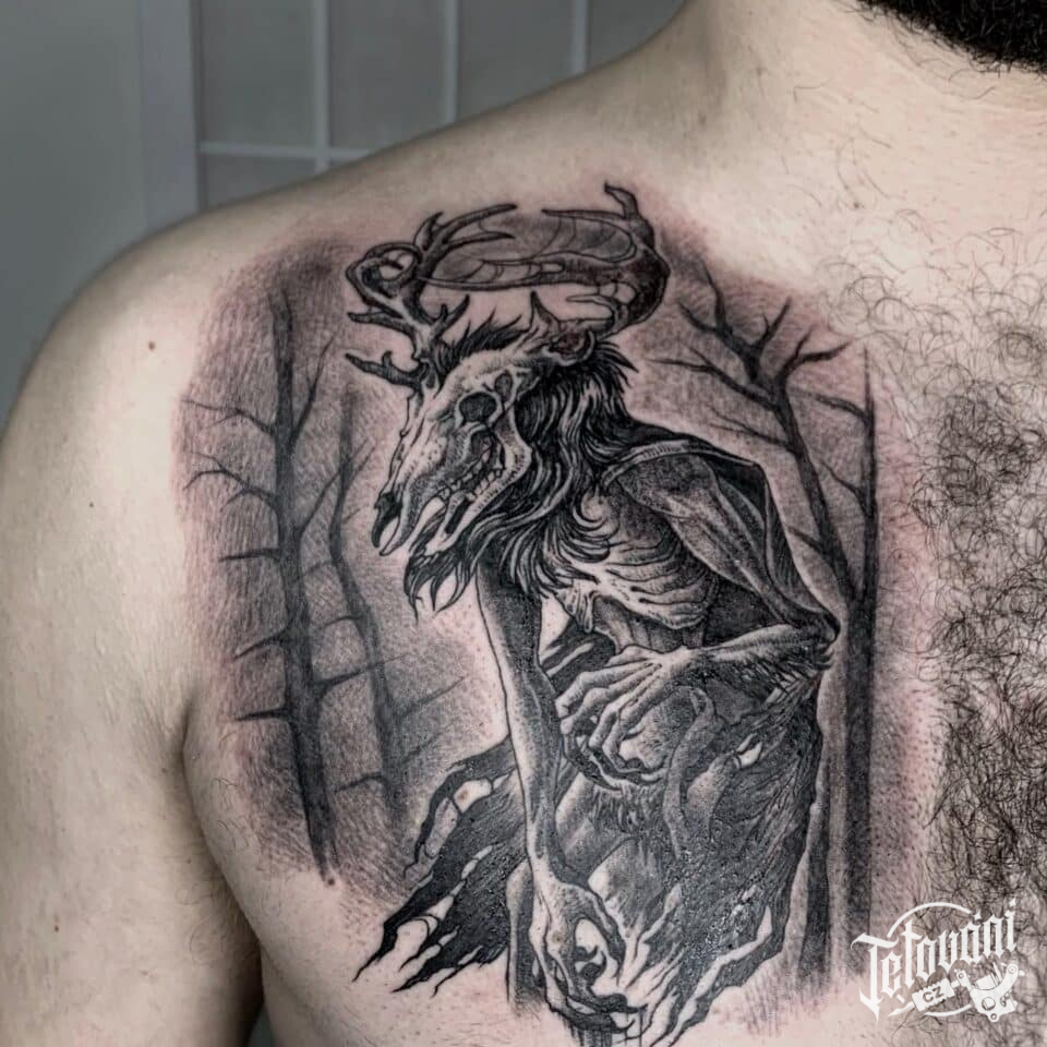 Tetování nadpřirozená bytost, lešij na lopatce