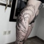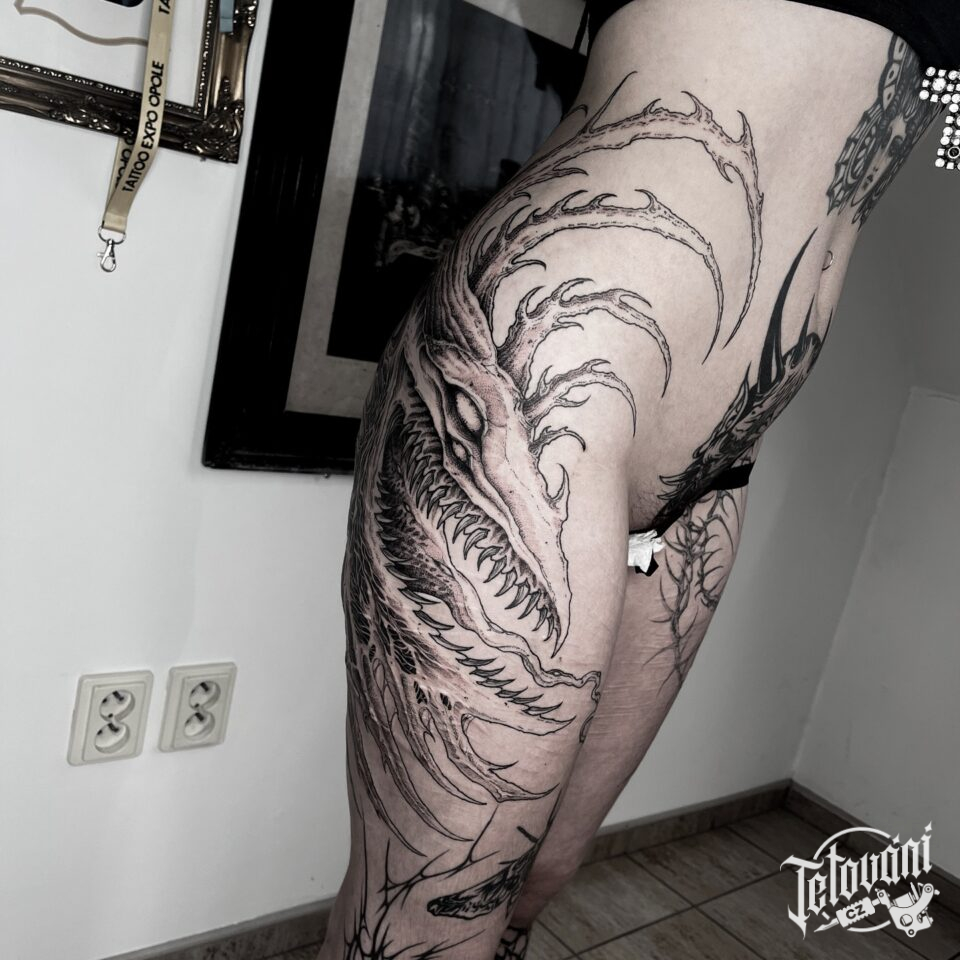 Tetování nadpřirozená bytost na boku stehna