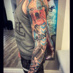 Tetování nadpřirozená bytost, nápis, předmět mikrofon na ruku