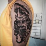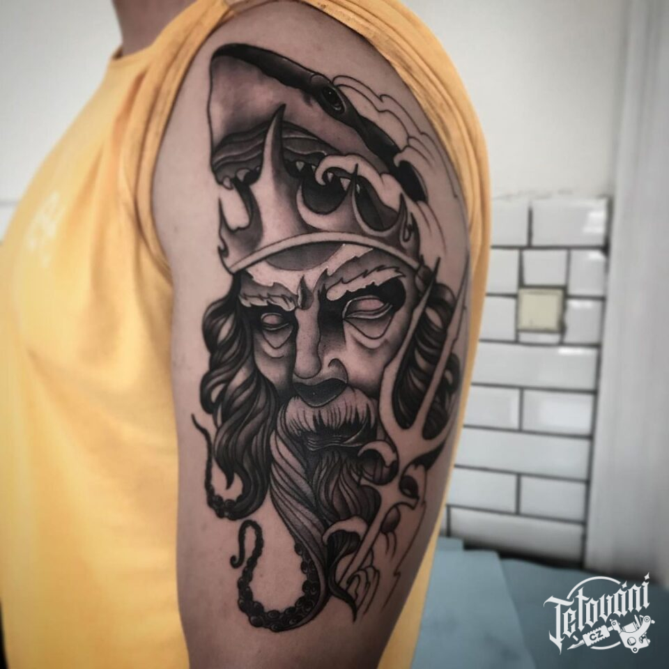 Tetování nadpřirozená bytost, portrét, zvíře žralok na rameno