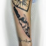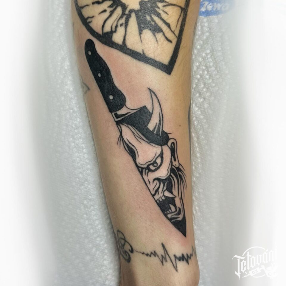 Tetování nadpřirozená bytost s nožem, symbol na předloktí
