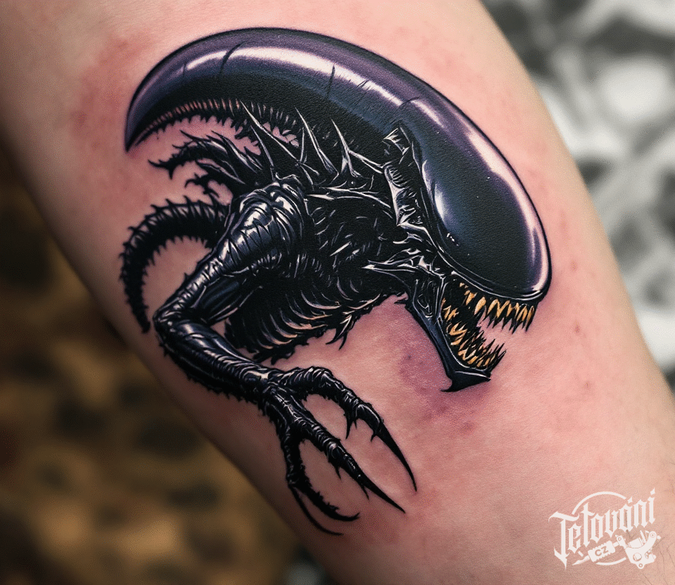 Tetování nadpřirozená bytost, vetřelec na holeň