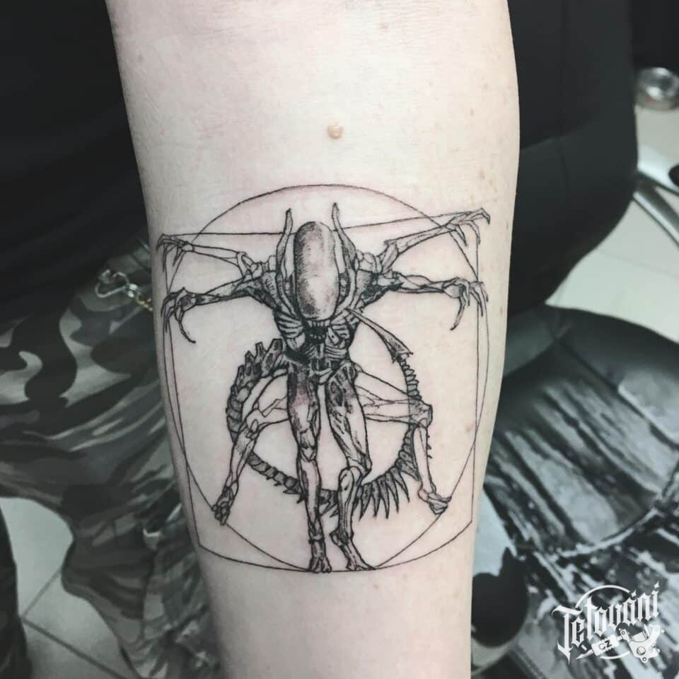 Tetování nadpřirozená bytost vetřelec na předloktí
