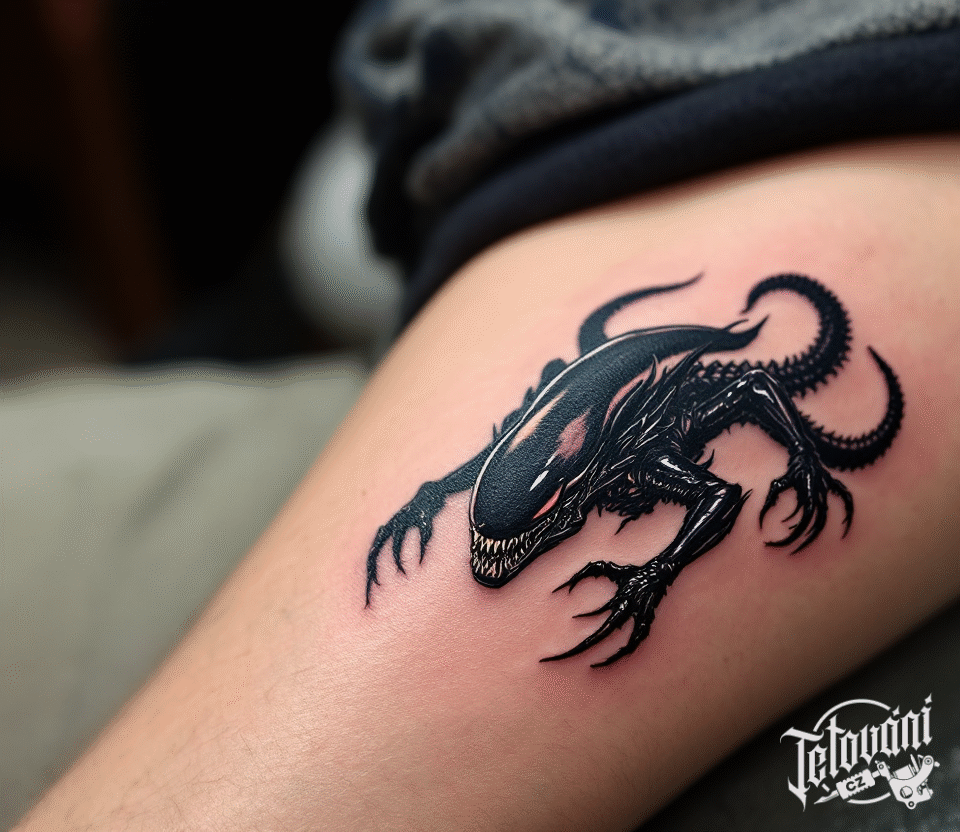 Tetování nadpřirozená bytost, vetřelec z filmů a pohádek na holeň