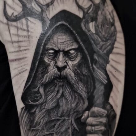 Tetování nadpřirozené bytosti, čarodějnice, lebky, rukáv
