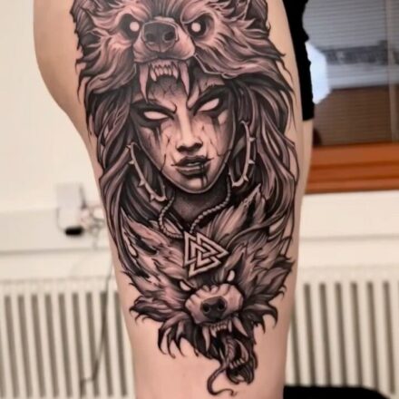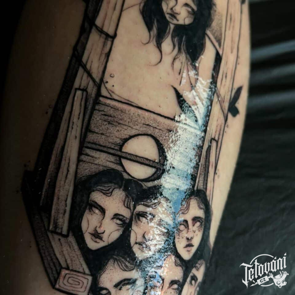 Tetování nadpřirozené bytosti, čarodějnice na lýtku