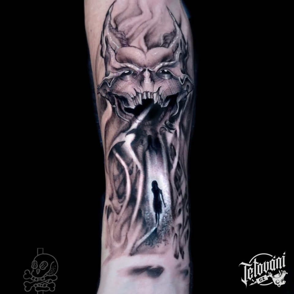 Tetování nadpřirozené bytosti, ďábel na předloktí