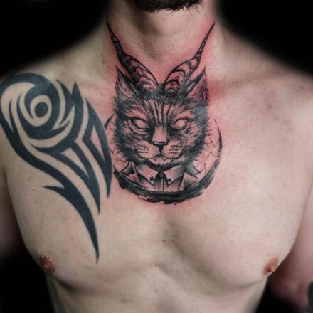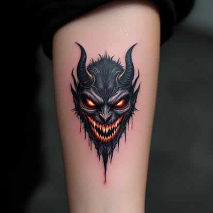 Tetování nadpřirozené bytosti, ďábel, rukáv