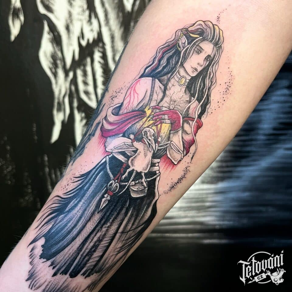 Tetování nadpřirozené bytosti, elf na předloktí