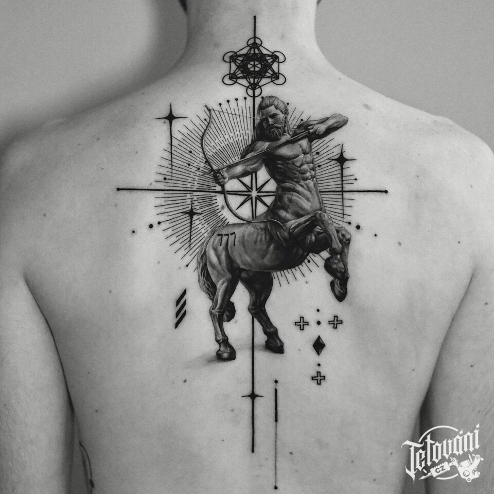 Tetování nadpřirozené bytosti, kentaur na zádech