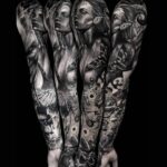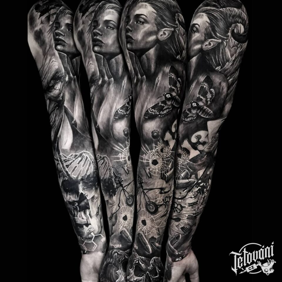 Tetování nadpřirozené bytosti, lebky na rukávu