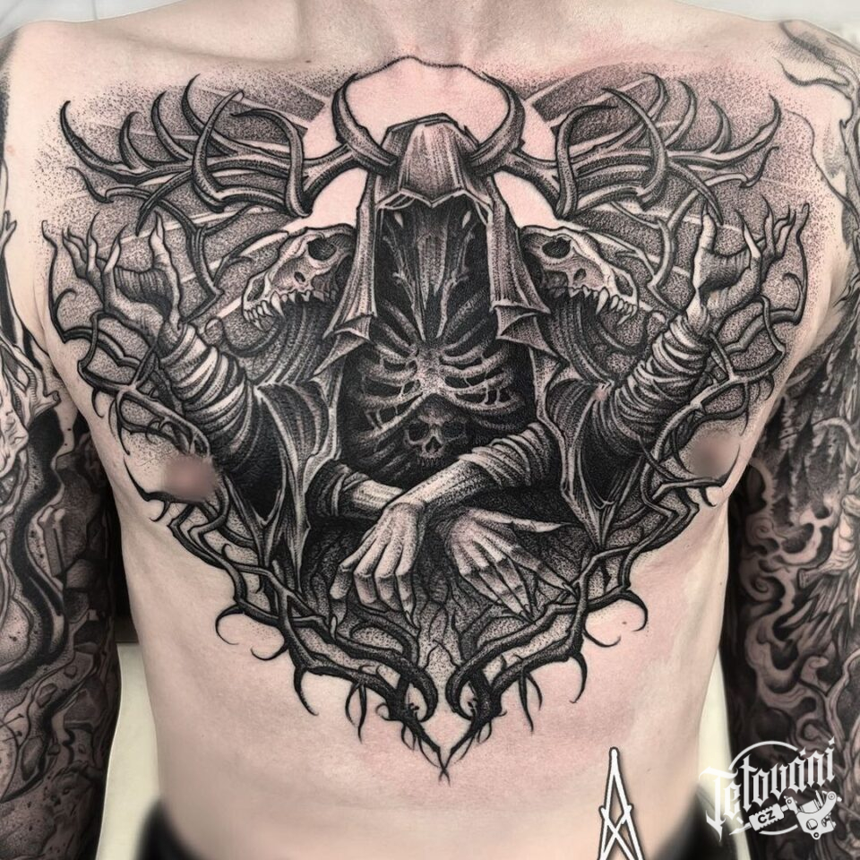 Tetování nadpřirozené bytosti, lešij na hrudi