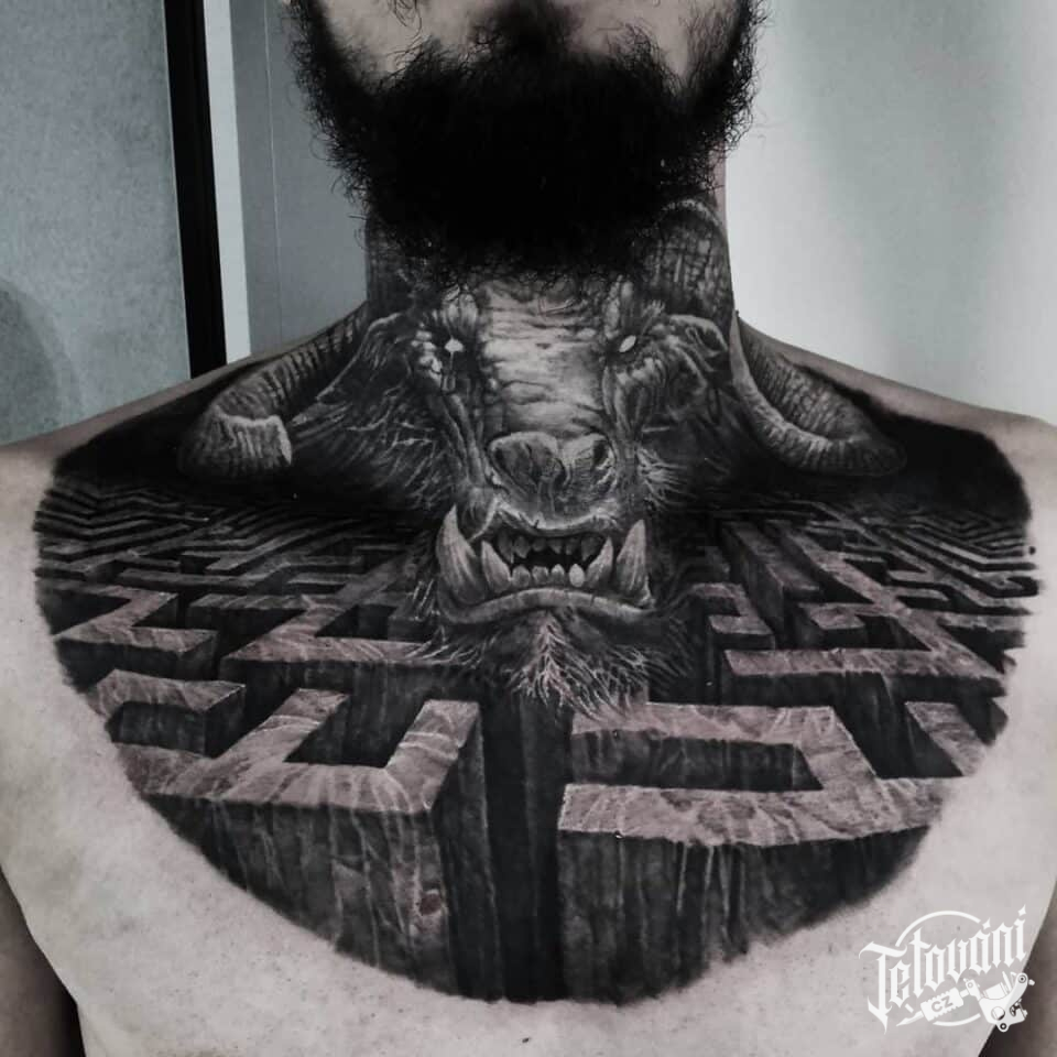 Tetování nadpřirozené bytosti, Minotaur na krku