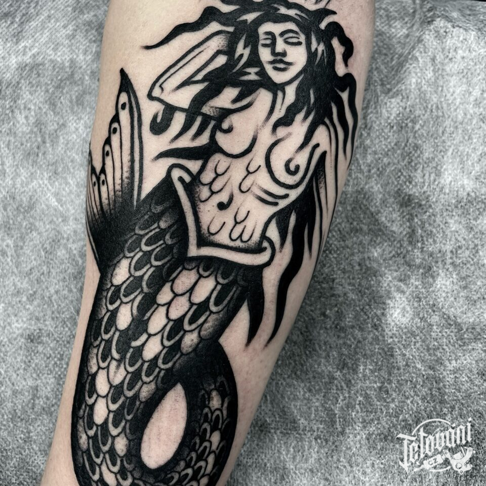 Tetování nadpřirozené bytosti, mořská panna na předloktí