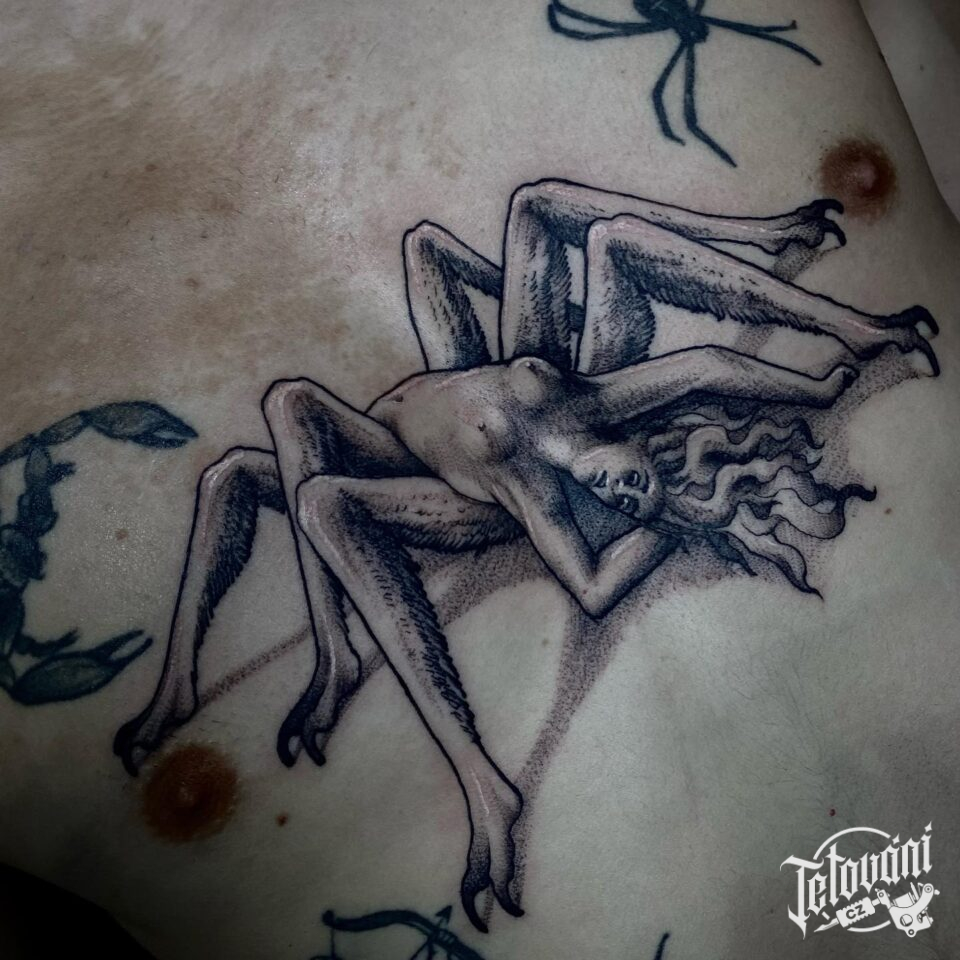 Tetování nadpřirozené bytosti na mezi prsa