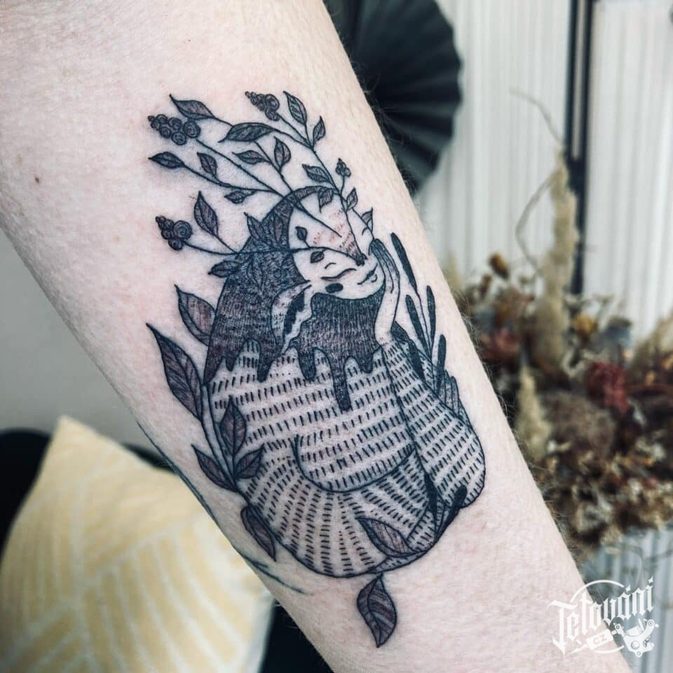 Tetování nadpřirozené bytosti na předloktí