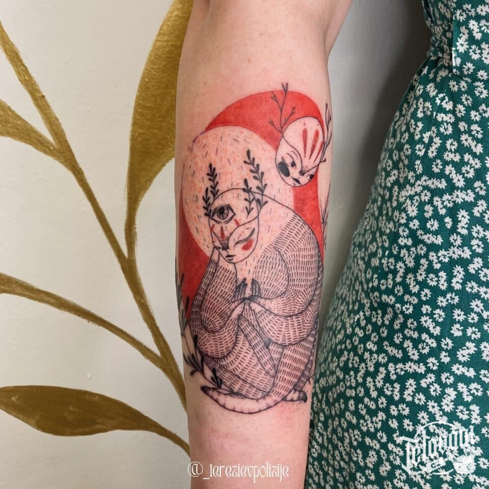 Tetování nadpřirozené bytosti na předloktí