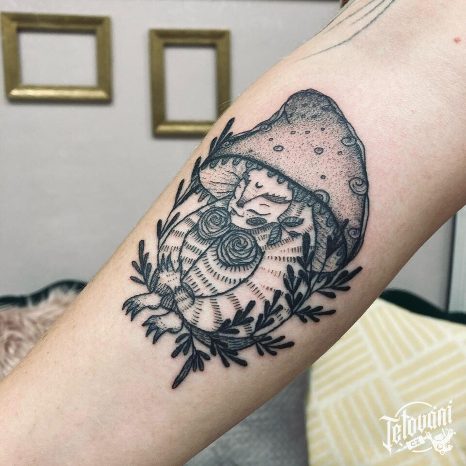 Tetování nadpřirozené bytosti na předloktí