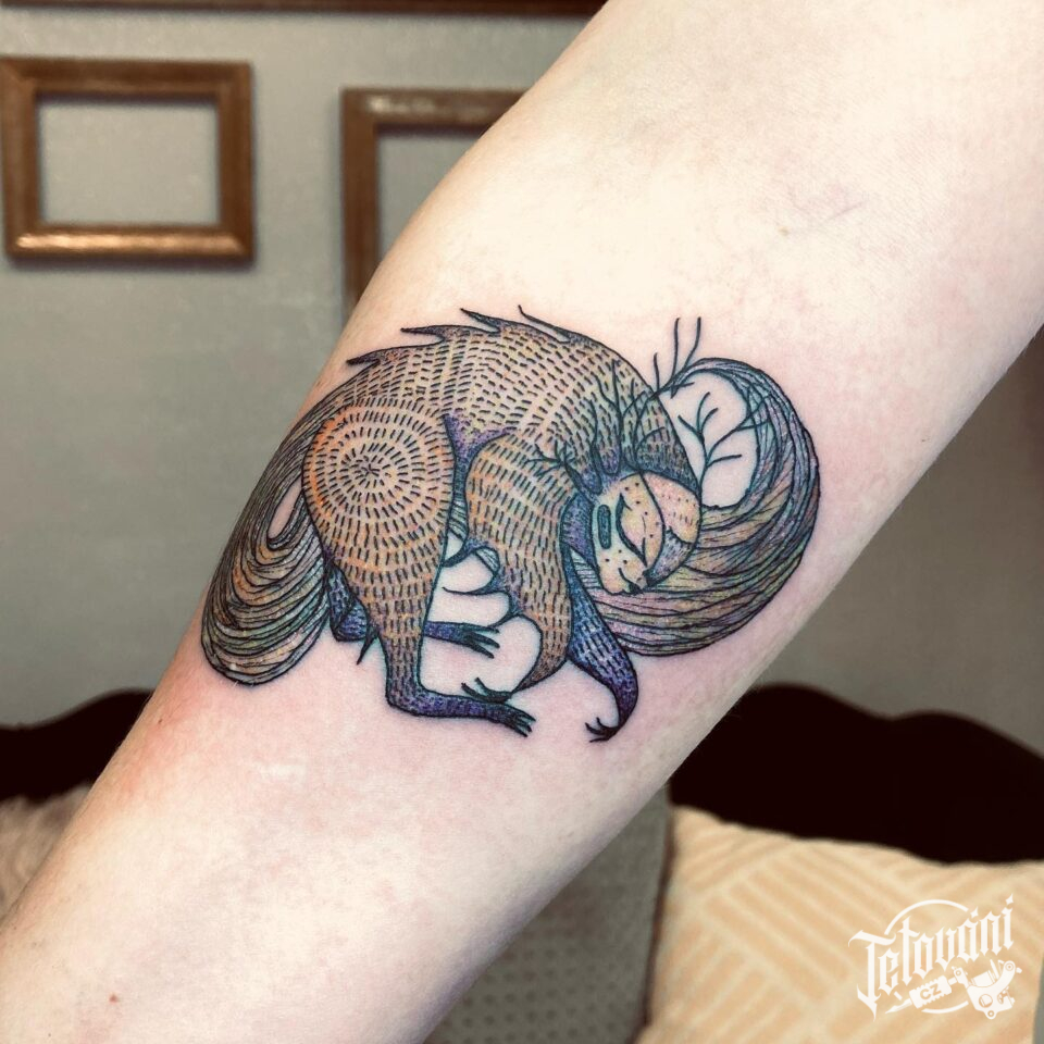 Tetování nadpřirozené bytosti na předloktí