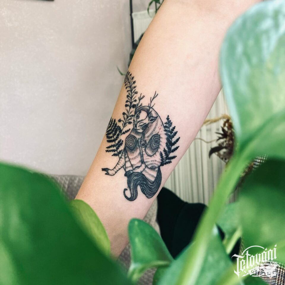 Tetování nadpřirozené bytosti na předloktí
