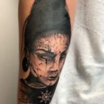 Tetování nadpřirozené bytosti, portrét čarodějnice na předloktí