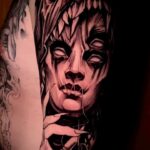 Tetování nadpřirozené bytosti, portrét čarodějnice na rameni