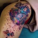 Tetování nadpřirozené bytosti, portrét víly na stehně