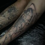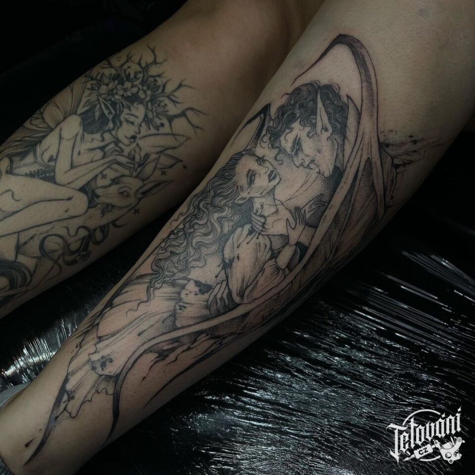 Tetování nadpřirozené bytosti, symboly smrti na holeň
