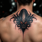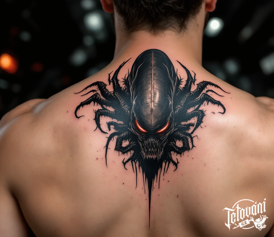Tetování nadpřirozené bytosti, vetřelec z filmů, znamení zla na záda