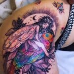 Tetování nadpřirozené bytosti, víla na stehně